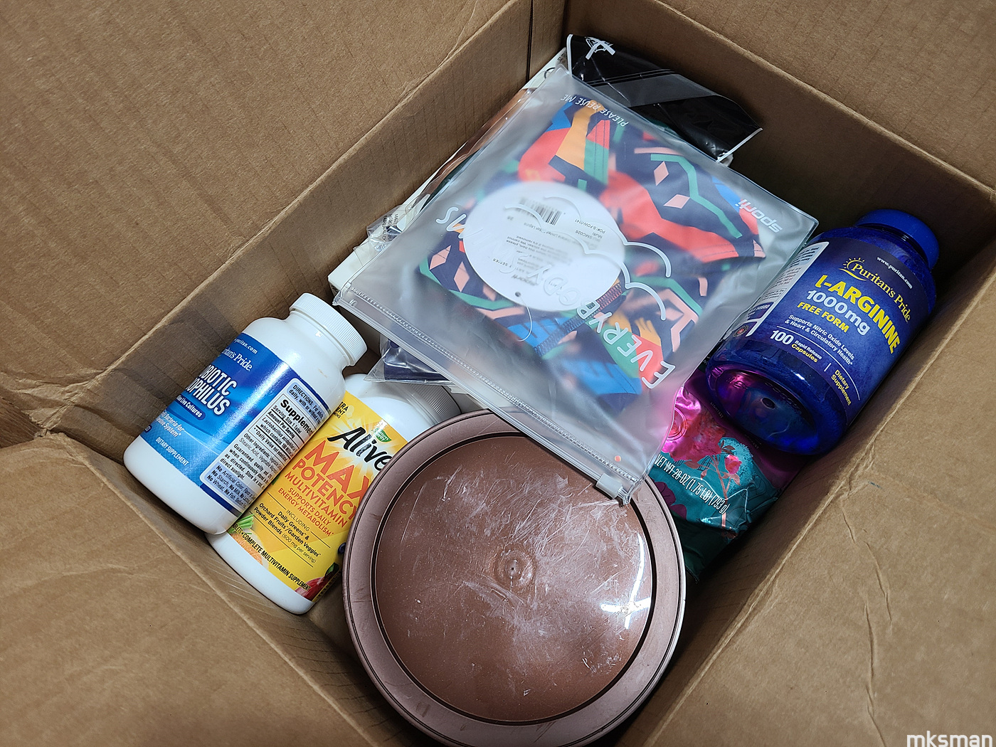 그렇게 한판 채운 품목들이 영양제, 수영용품, 그리고 커피 원두다. 일단 영양제가 차가 되면 일반통관으로 150달러 이내로 사야 관세를 면할 수 있다는 건 참고하시길 바랍니다~